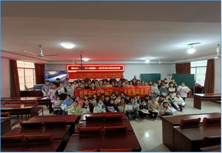 •2024年1月江西J9国际及J9国际党支部前往上栗县桐木镇胜利中学开展“暖冬行动为爱接力”关爱留守学生志愿活动,为学生送去学习及生活用品超7000余元。
